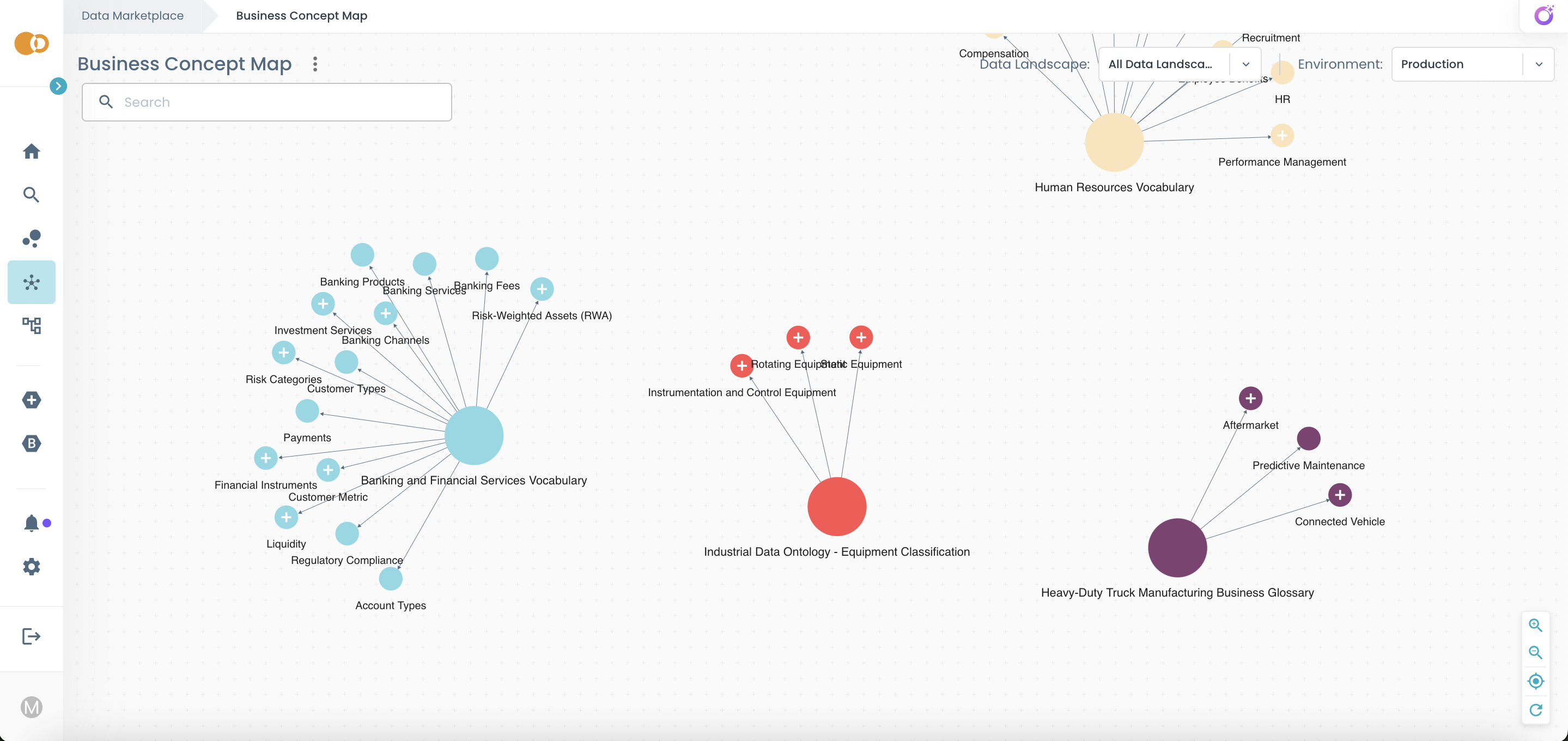 Navigate your organization’s business terminology as an interactive map and discover Products through business concepts rather than technical identifiers.